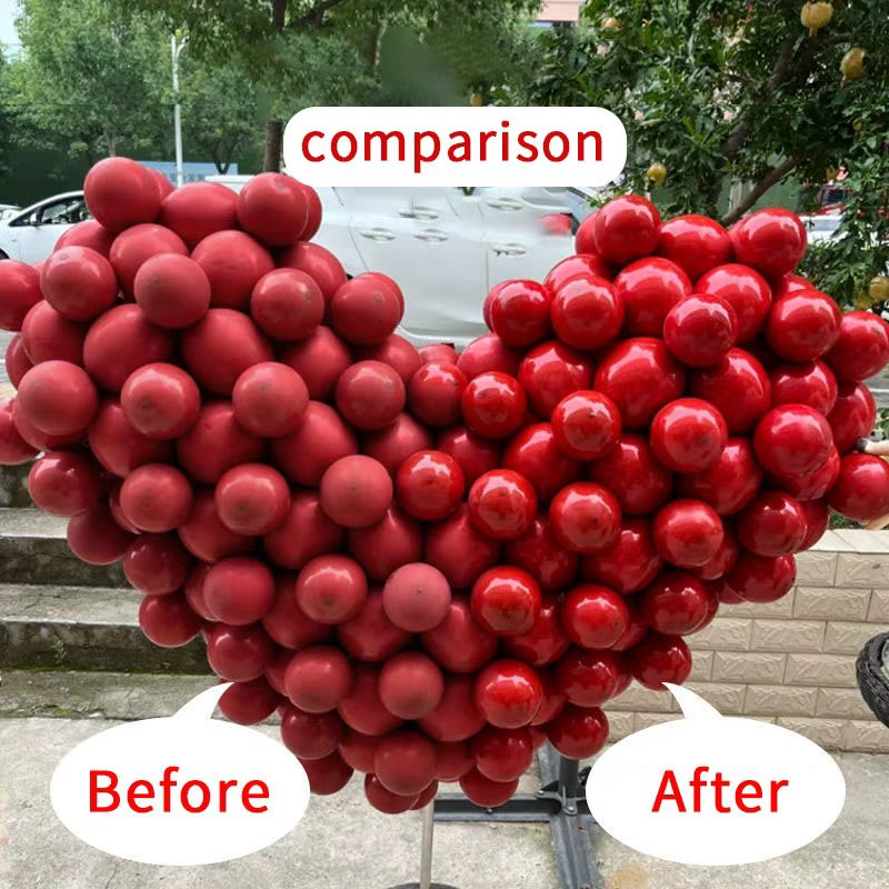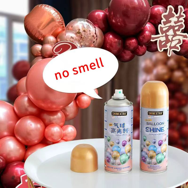 Balloon Shine Spray använder en innovativ oljebaserad formel. Dess mikromolekylära struktur tränger snabbt in och fäster vid latexytan och bildar en sömlös, högglansskyddsfilm. Behandlade ballonger kan uppnå ett glansökning på över 300%, vilket resulterar i livliga, rika färger.