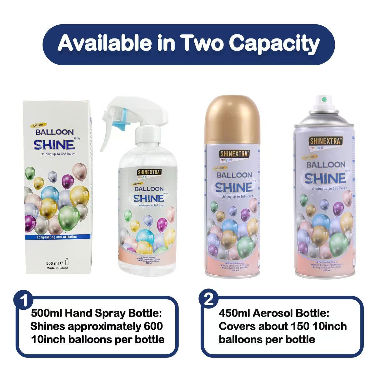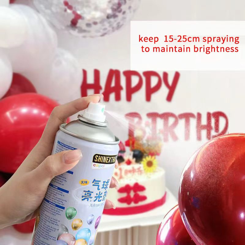 Ballong Oil Base Shine Spray: Lämplig för alla typer av latexballonger (rekommenderas inte för aluminiumfolieballonger). Perfekt för bröllop, födelsedagsfester, babyduschar, affärsöppningar, fönsterdisplayer, ballongkedjor, ballongbågar och mer.