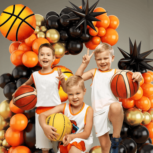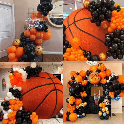 Basket ballong girlander kit är en symbol för sport anda. Den levereras med flera latexballonger och flera folieballonger. Som det är för baskettemat är färgerna i denna uppsättning huvudsakligen orange och svart, och för att göra olika lagermetalliska guld latex ballongertillkommer också. Den totala stilen på det är mycket attraktiv, det kan omedelbart förbättra atmosfären på din fest.