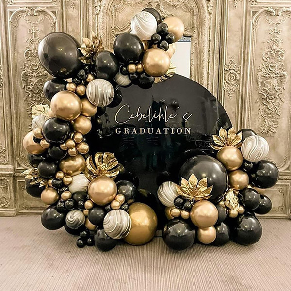 3. Vi stöder inte bara storleken på latexballong för anpassade svartguldballongbåge, utan också speciellt stöd för att anpassa storleken på ballonger enligt kundens behov. Du kan välja mellan 5 tum, 10 tum, 12 tum, 18 tum och 36-tums latexballonger för att säkerställa att de kan tillgodose dina olika behov vid olika tillfällen och aktiviteter. Dessutom för att bättre träffa de olika USAE Krav från Party Decorators, NIUN® Balloon Factory tillhandahåller också en serie anpassade tjänster, inklusiveG men inte begränsat till bakgrundskort, regngardin, bakgrundduk och födelsedagsflagga och andra dekorativa element. Om du har några unika idéer eller speciella idéer inbjuder vi dig uppriktigt att dela dem med oss när som helst. Vårt team kommer att göra vårt bästa för att hjälpa dig att förvandla dessa idéer och idéer till verklighet.