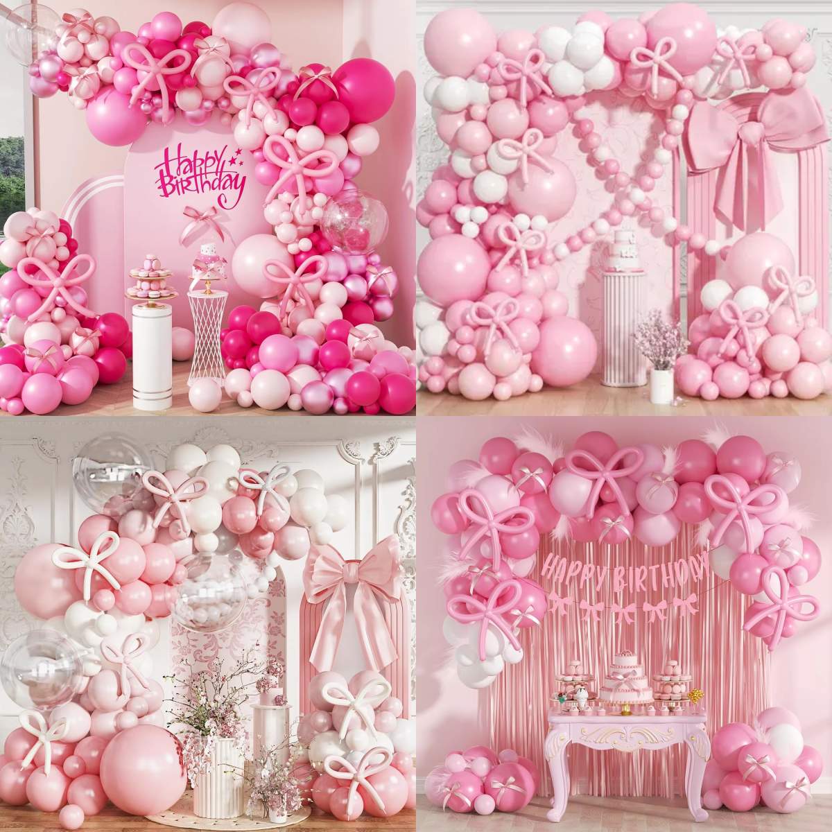 Det eleganta Pink Bow Balloon Arch Kit matchar perfekt alla krav från flickor för söta teman. Båge födelsedagsfestuppsättningen är ett mycket bra val för baby välkomstfester, bröllop, ungkarlfester, etc. Denna härliga rosa ballongkrans är fräsch och vacker. Om du håller på att hålla en fest är det definitivt ditt perfekta val. Bågarna på ballongkransarna kan göras själv, så att du kan uppleva det roliga med DIY! Om du tror att ditt rum behöver fler bågdekorationer kan du också lägga till dem i ditt rum.