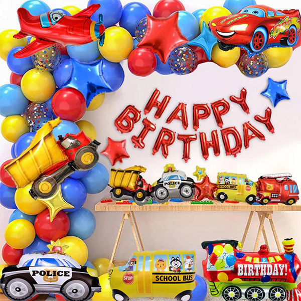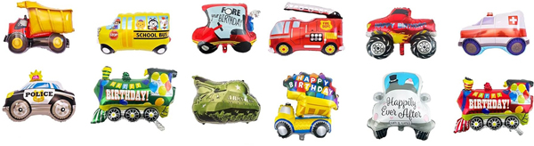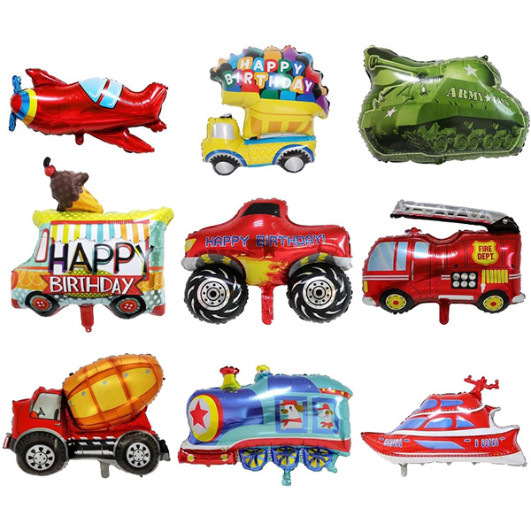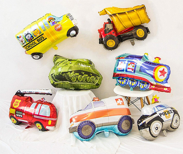 Om du vill använda i små fester, eller som dekorationer. Du kan välja de tecknade fordonsfolieballongsatserna som vi matchar åt dig. Detta kit innehåller vanligtvis en stor tecknad fordonsfolieballong, en 18 tums rund folieballong och en 18 tums stjärnfolieballong. Dessa ballonger ser väldigt vackra ut och kan förstärka skönheten i bilderna. Att dekorera den på huvudväggen gör att gästerna kan ta perfekta foton på sociala medier, för som vi vet, utan ett foto med en perfekt bakgrund, är festen inte komplett.