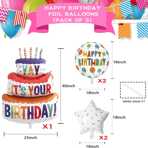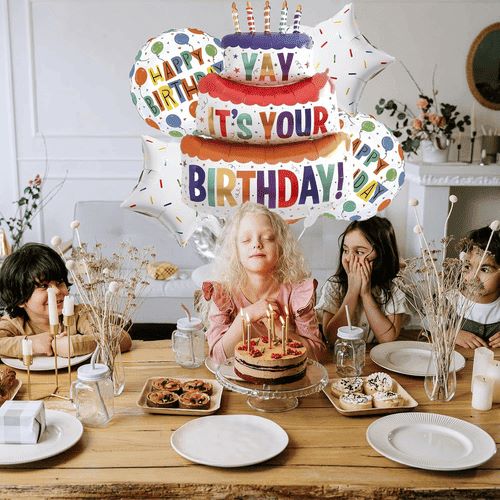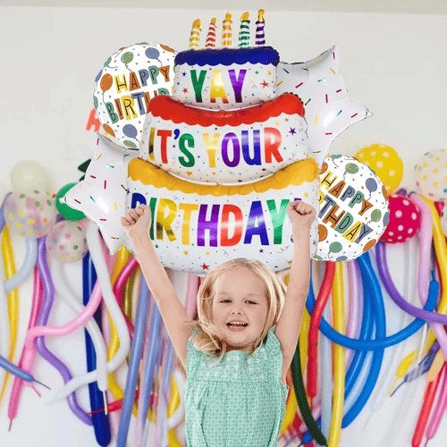 Tårtfolieballongen är det viktigaste i folieballongens födelsedagsset. Utöver det har den även stjärnfolieballong och rund födelsedagsfolieballong.