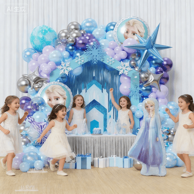 Ballongbåge med fryst tema som Disney-produkt, älskad av barn och vuxna i världen.