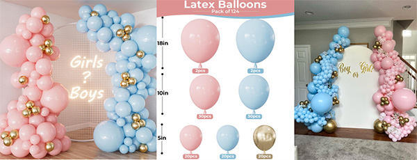 Gender Reveal Balloon Arch Set Dessa rosa-blå ballonger är lämpliga för både storslagna fester och varma sammankomster. De är perfekta för att dekorera fotoytor, dessertbord, entréer eller utomhusutrymmen, förhöjer omedelbart atmosfären och matchar enkelt olika festteman, allt från elegant till avslappnad.