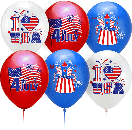 Happy 4th of July ballonger är gjorda av säkra och miljövänliga material, latexballonger är 100 % naturlig latex och folieballonger är foliefilmer av livsmedelskvalitet.