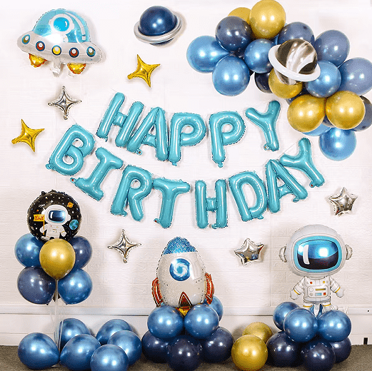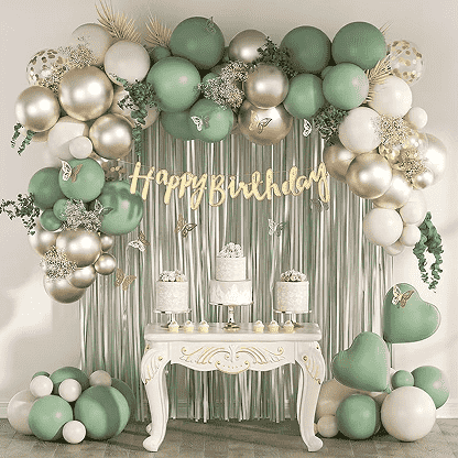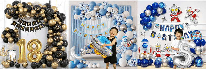 Den grundläggande stilen är en Happy Birthday latexballong i samma eller komplementfärg, medGrattis på födelsedagen brev folieballongerellerantal folieballonger. Klassiska stilar har Macaroon pulver gel ballong rosa Happy Birthday folie ballong, svart latex ballong guld nummer folie ballong. Latexballonger kan träs in i en ballongkedja och hängas på väggen eller taket, med folieballonger som visuellt centrum och en liten mängd bandutsmyckning för att snabbt skapa en enkel och strukturerad feststämning.