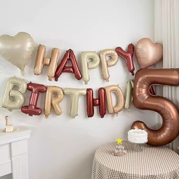 Till skillnad från de platta och deformerbara bokstavsballongerna på marknaden använder Borun-bokstavsballongerna en tredimensionell skärningsprocess. Efter uppblåsning kan varje bokstav bibehålla en fyllig och skarp form utan att kollapsa eller rynkor. Bokstäver är i allmänhet amerikanska feta bokstäver, med en standardstorlek på 16 tum och ett separat utsökt papperskortpaket. De är också produktstilar med engelska och spanska stavningar. De finns i monokroma, gradientfärger, tryckta mönster och andra stilar. De kan fritt matchas enligt den övergripande layoutstilen för att skapa en koordinerad och enhetlig visuell effekt. Vi förser även kunder med skräddarsydd Grattis på födelsedagsfest brevfolieballongservice, anpassa din egen känsla av ceremoni genom att lägga till digital ålder och namnstavning. Utöver denna grundläggande stil, producerar vi också sammanfogade små bokstäver Happy Birthday, som kan användas direkt efter uppblåsning utan skarvning.