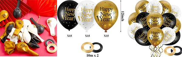 Latexbollar med nyårstema är dekorativa ballonger som finns i set, med nyårsdesigner som "Gott nytt år" eller festliga färger som svart, guld och silver. De är perfekta för fester och kan användas för att skapa ballongbågar, buketter eller hänga i taket. Alla latexbollar med nyårstema som erbjuds av Borun Balloon Factory är helt gjorda av latex och uppfyller Happy New Party Latex Balloons CE-certifiering. Varumärket niun stöder grossistförsäljning av dessa latexballonger med nyårstema. Dessa latexbollar för gott nytt år är både praktiska och estetiskt tilltalande och erbjuder både kostnadseffektiv och kreativ design. De lyfter omedelbart den festliga atmosfären och ger värme och glädje till varje fest.