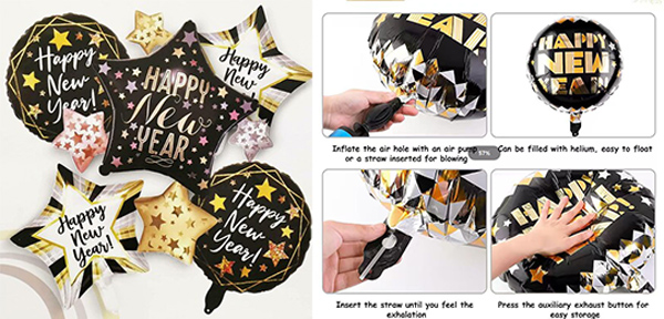 Alla folieballonger för gott nytt år är heliumstödda och återanvändbara: Ballongsetet är heliumstödt och är den perfekta bakgrunden för nyårsdekorationer. Efter uppblåsning, nyp helt enkelt ihop öppningen på mylarfoliens nyårsballong så försluts limmet automatiskt. Det är lätt att blåsa och täta, lätt att blåsa upp och tömma och kan flyta länge. Du kan placera dem vid dörröppningar eller på tak och väggar.