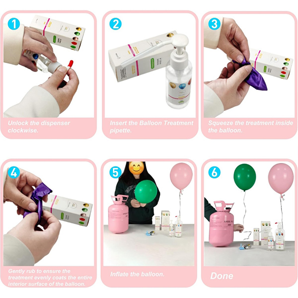 3. Använd den uppgraderade formeln för att säkerställa formtiden för limfilmen inuti ballongen kortare effektivt. Det designades speciellt för att förlänga den flytande tiden för heliumballonger i varm och fuktig miljö.