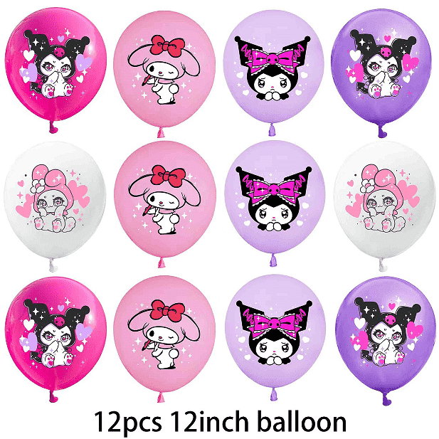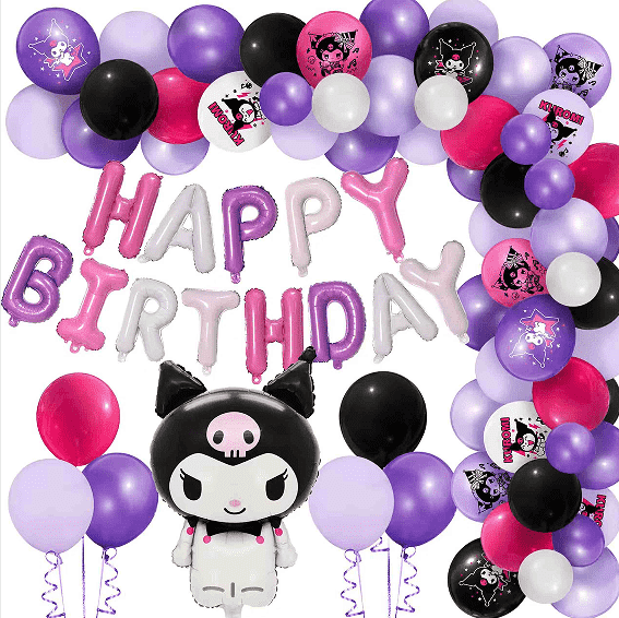 1. Anpassad Kuromi -partyballong: Tillhandahålla folieballonganpassning (mönster och form), latexballongtryck och stildesign av ballong och kransuppsättning.
