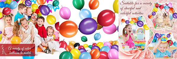 Oavsett om det är en födelsedagsfest, bröllop, firande eller något annat tillfälle, genom att para ballonger i samma färg eller andra färger, kan du skapa den eleganta atmosfären du önskar. De kommer att vara de perfekta utsmyckningarna för årsdagar, Halloween, Baby Welcome -fester, julfester eller något annat evenemang. Länkballonger är alla idealiska val för att skapa en unik atmosfär och väcka uppmärksamhet.