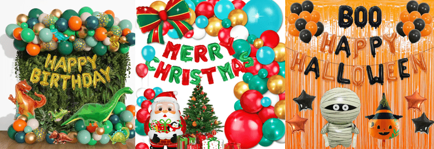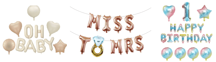 Ballongsatser är förkombinerade uppsättningar av brevfolieballonger, hjälpverktyg och dekorativa rekvisita. Det finns inget behov av att köpa tillbehör separat. Efter instruktionerna kan installationen slutföras på 30 minuter, vilket gör den lämplig för nybörjare, nödsituationer eller bulkköp av företag.