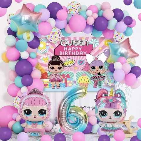 LOL surprise doll är ett leksaksmärke för blinda lådor designat och lanserat av MGA underhållningsföretag i USA. Det har blivit en av de mest sålda leksakerna på den amerikanska marknaden. Därför är LOL:s omgivning älskad av barn över hela världen. Därför lanserade vår fabrik denna LOL-ballong, som täcker många typer av ballongprodukter, främst inklusive latexballonger, folieballonger och ballonggirlander. LOL latexballonger är gjorda av naturgummi, som har bra elasticitet och kan fyllas med luft och helium. LOL folie ballong är en mängd olika former, som innehåller en mängd olika seriefigurer av folie ballong, kan locka människors uppmärksamhet. Denna folieballong kan behålla sin uppblåsbara form under lång tid och är inte lätt att blekna. Ballonggirlangsetet med LOL-tema innehåller latexballonger, folieballonger och dekorativa element som ska monteras för snabb fest. Vi stöder även anpassad LOL-ballongdesign, specifika mönster eller text kan anpassas för att möta unika behov. Dessa produkter är inspirerade av LOL överraskningsdockor, lämpliga för barns födelsedag, temafest eller firande, kan förstärka den övergripande dekorationseffekten.