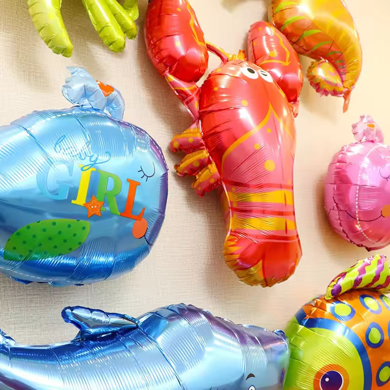 Marine life folieballonger är en ny ballongprodukt som släppts av NiuN® ballongfabriken. Denna marina livsfolieballong har en mängd olika färger. Det finns mer än 50 sorters folieballonger som delfiner, hummer, clownfiskar, sjöhästar, krabbor, etc. Om du har andra stilar av folieballonger för marint liv som du vill köpa, och våra bilder inte täcker dem, kan du skicka bilder eller mönster till oss. Vi skräddarsyr gärna dina exklusiva folieballonger för dig. Vi tror att oavsett om det är en fest, fest eller något annat tillfälle, kan dessa färgglada och vackra folieballonger i marina livet tillföra en speciell atmosfär till ditt evenemang. NiuN® ballongfabriken har åtagit sig att tillhandahålla produkter och tjänster av bästa kvalitet till våra kunder. Vi tror att genom våra skräddarsydda tjänster kommer du att kunna få en unik dekoration med marint tema för att göra ditt evenemang mer minnesvärt.