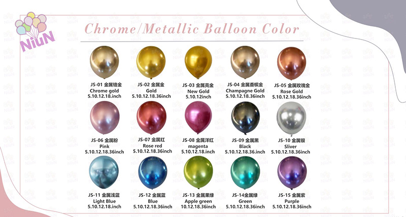 Färg: Metallballongerna har 15 färger. Du kan blanda dem fritt för oändliga visuella effekter.