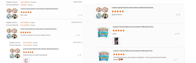 Du kan välja en enda metallisk färg för paketet. Populära alternativ är champagneguld, metalliskt grönt, roséguld och så vidare. Det gör att din scen känns enkel och sammansatt. Den sträcker sig riktigt bra. Det poppar nästan aldrig. Den förblir full i över 12 timmar efter uppblåsning. Du kan också blanda olika metalliska nyanser. Prova guld och silver tillsammans. Detta skapar skiktad, iögonfallande dekor. Para ihop dessa ballonger med konfettilatexballonger också. Den mjuka glansen hos metallballonger står i kontrast till den glittrande konsistensen hos konfetti. Konfettin rör sig inuti när du skakar dem. Detta ger nöje och rörelse till alla utrymmen. De små metalliska färgballongerna fungerar för födelsedagsfester, bröllop, semesterevenemang och butiksfönster. Varje set klarar stränga lufttäthets- och säkerhetstester. Den uppfyller internationella standarder som EN71 och CE. Att blåsa upp dem är lätt. Även nybörjare kan använda dem. De är också älskade av professionella evenemangsplanerare. Du kommer att skapa ett utrymme med fantastisk atmosfär.
