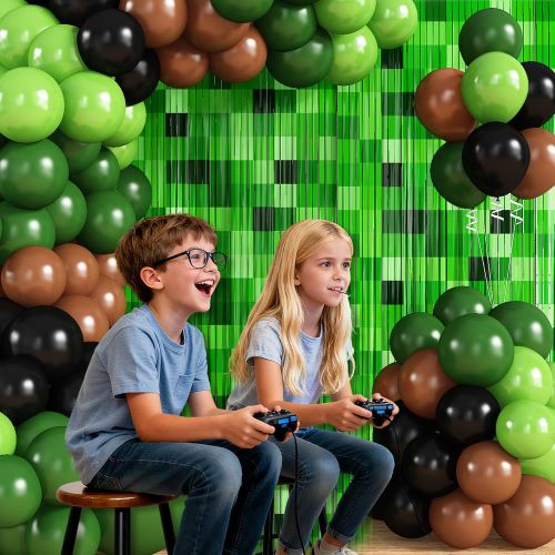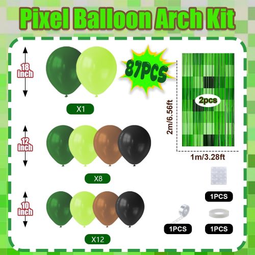 Det är inspirerat av minecraft-videospel, detta hållbara minecraft-ballongbågssats kombinerar olika nyanser av gröna pixelballonger med partybakgrunder med minecraft-tema för att skapa en lekfull skiktad look som fångar charmen med klassiska äventyrsspel.