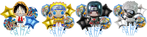 Vår fabrik skapade nyligen en matchande ballongdräkt för denna tecknade serie, som kan användas av kunder som gillar One Piece på fester. Detta One Piece folieballongsats innehåller en tredimensionell aluminiumfolieballong med seriefigurer, en 18-tums rund One Piece tryckt folieballong och en 18-tums stjärnfolieballong. Dessa festartiklar är inte bara lämpliga för födelsedagstillfällen, utan dekorativa set är också mycket populära bland One Piece-fans.