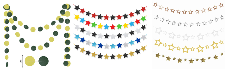 Formen på pappersbannern är annorlunda, med triangel, rektangel, laxstjärt och så vidare de vanligaste, det finns även runda, hjärtformade och andra speciella former. Storleken kan anpassas efter behoven, längden är i allmänhet flera meter, och storleken på banderollen i ett stycke har också en mängd specifikationer att välja mellan.