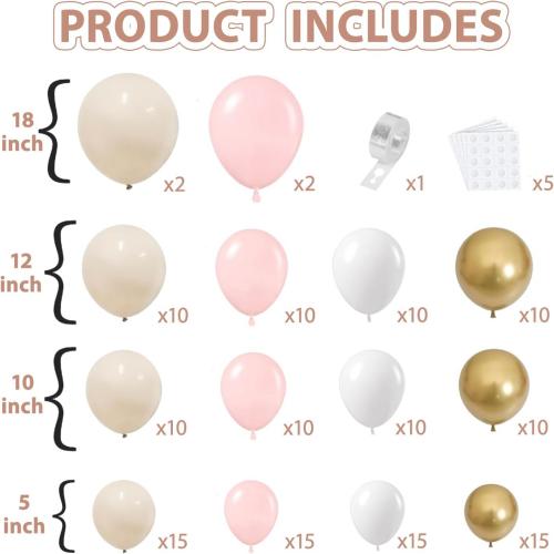 Som en av de mest populäraballongbågssatserpå marknaden, av var 10:e kund, kommer cirka 8 av dem att välja denna stil. Det är för att vår högkvalitativa rosa beige vita ballong är mycket lämplig för bröllopsfest, födelsedagsfest, babyshower, genusavslöjande fest och så vid andra tillfällen, så att de blir älskade av kunderna.