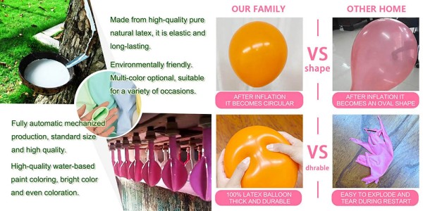Starkare konsistens: Tack vare användningen av högkvalitativa råvaror och avancerad teknologi har var och en av våra latexballonger en mycket stark struktur och rika färger.