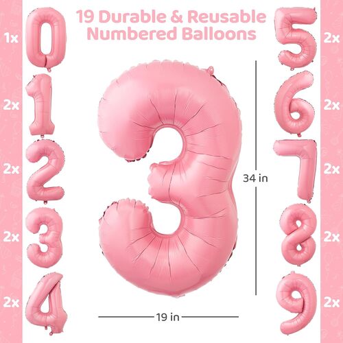Rosa födelsedagsballongset består huvudsakligen av högkvalitativa latexballonger och olika folieballonger. Som en symbol för födelsedagstemat är 34-tums nummerballongerna den viktigaste komponenten. Bokstavsfolieballongen med meddelandet "Happy Birthday" är också väldigt attraktiv. Utöver det kan den andra stilade folieballongen som läppstiftsfolieballong, flaskfolieballong och så vidare ge mer atmosfär till detta paket.