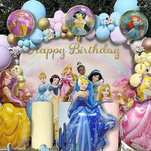 Dräkten tar latexballonger med Princess-tema som kärnan, och matchas med grundläggande dekorationer som band, ballongkedjor, limfläckar, etc. Den har hög kostnadsprestanda, enkel layout, tidsbesparing, inga professionella färdigheter, och 1-2 personer kan slutföra konstruktionen på 30 minuter. Dräkten innehåller 15-20 latexballonger, som passar för mindre sällskap med mindre än 10 personer. Det är förstahandsvalet för scener med begränsad budget och som snabbt vill skapa sagostämning.