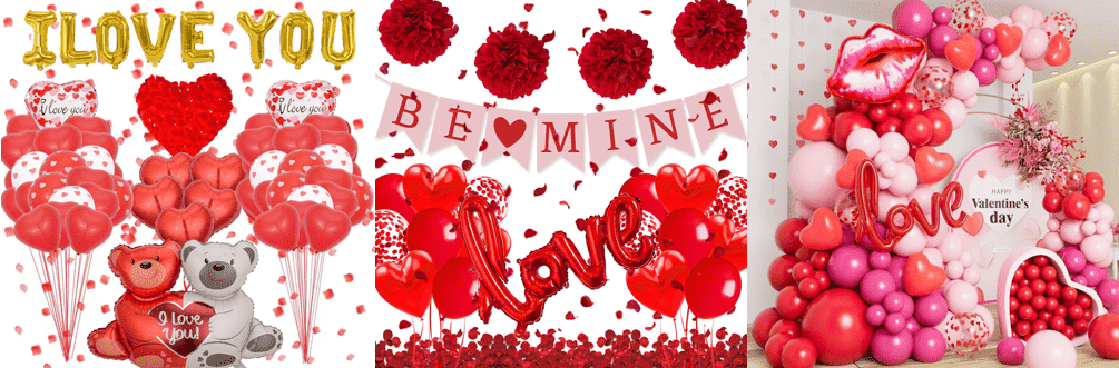 Alla hjärtans dag-ballonger är designade kring romantik, kärlek och ritualer. Kärnkategorierna kan delas in i alla hjärtans dag hjärtformade folieballonger, alla hjärtans dag-stil folieballonger, alla hjärtans dag bokstavsfolieballonger och skräddarsyddaAlla hjärtans dag ballong girlander setoch så vidare.