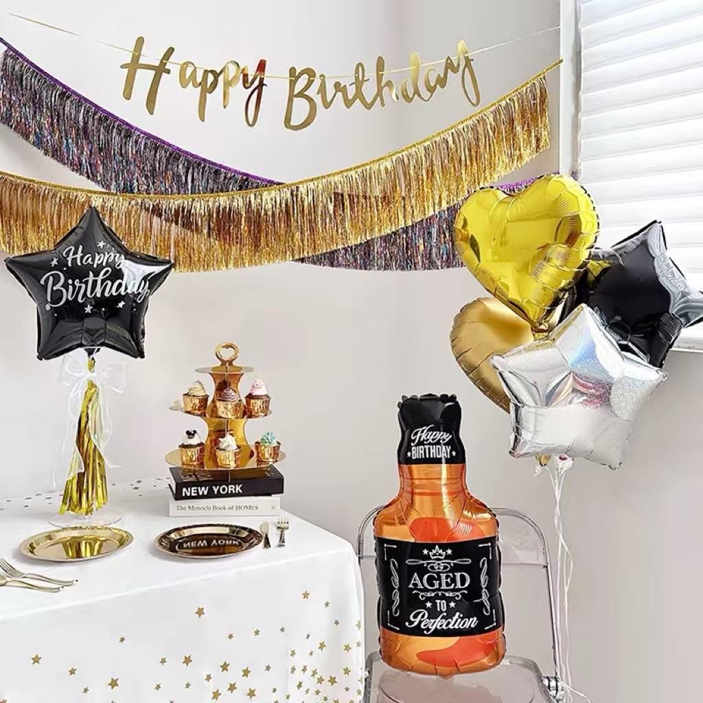Det finns också ett set med födelsedagstema. De rosa och söta vinflaskballongerna är designade med hjärtformade folieballonger och "Happy Birthday"-bokstavsballonger och den rosa guldfärgen är väldigt romantisk och varm. Det ger en söt känsla till födelsedagsfesten.
